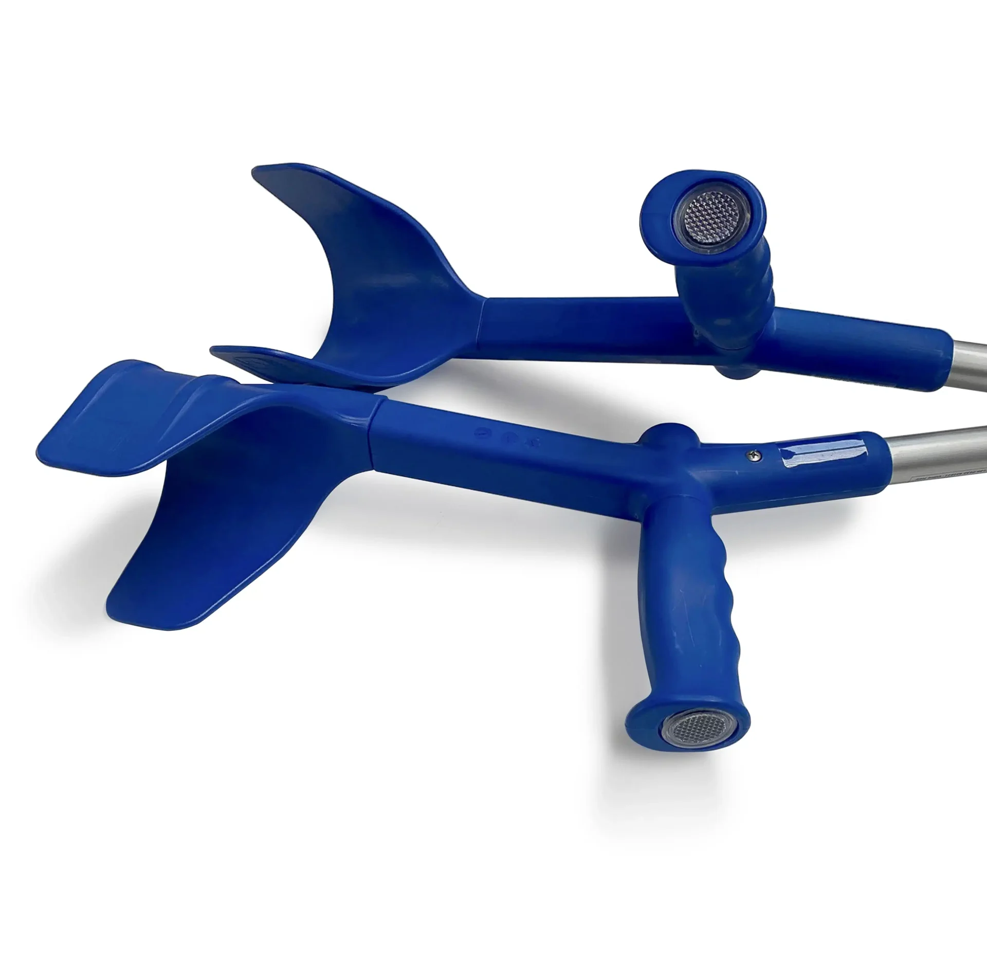 Leichte, höhenverstellbare Aluminium-Krücken von Chinesport für Erwachsene. Mit ergonomischen Handgriffen, rutschfester Spitze, Reflektoren und komfortabler Ellbogenstütze – ideal zur sicheren Mobilitätsunterstützung bei vorübergehender oder dauerhafter Gehbehinderung.